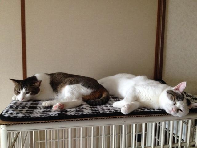 旦那に、気に入ってるところ残念だけど、このケージは君たちのじゃないにゃ。って言い聞かされてます。分からないよねー(^^;;