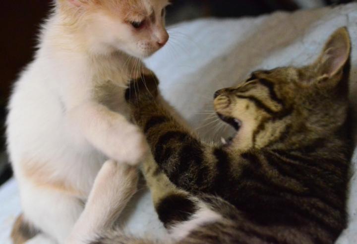 あっちでコロコロ、こっちでコロコロ、2匹で転げまわって遊んでいます。