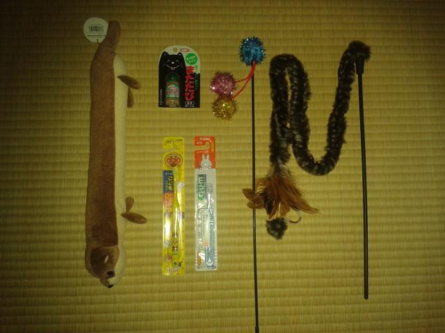 ららぽーと とかいう所のペットショップで買った 右の長い方の猫じゃらしはヒット♪