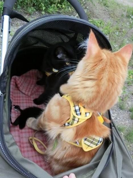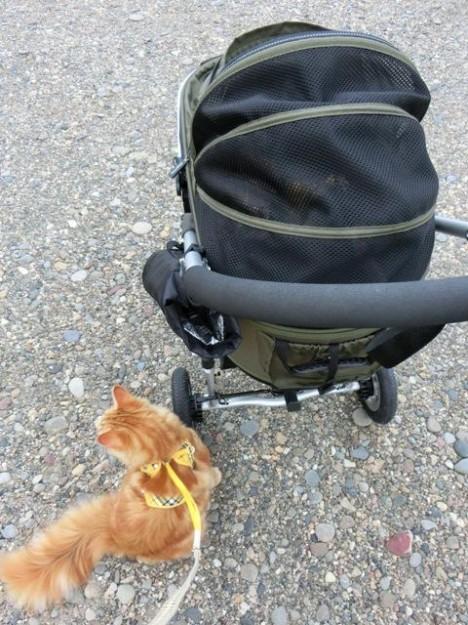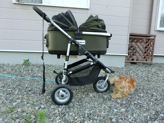 ・猫ちゃんにとってはバギーが安全地帯に思えるらしく、見知らぬものに出会うとバギーの陰で身を伏せている。