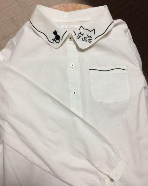 ニャンコの刺繍のブラウスで