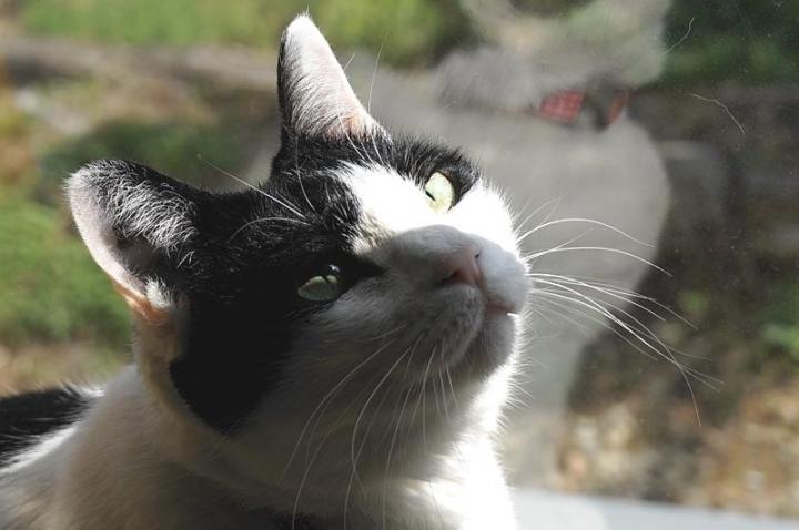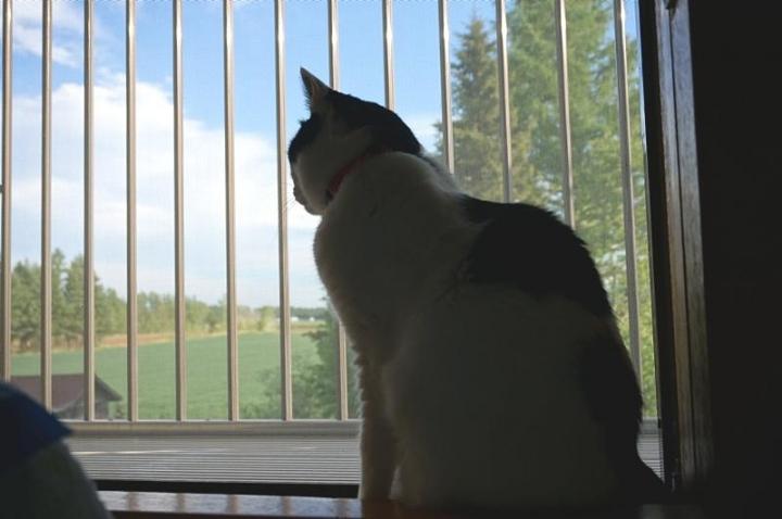 今日は窓辺に張り付いて、おんもをみています。