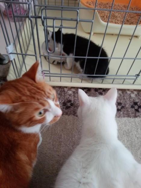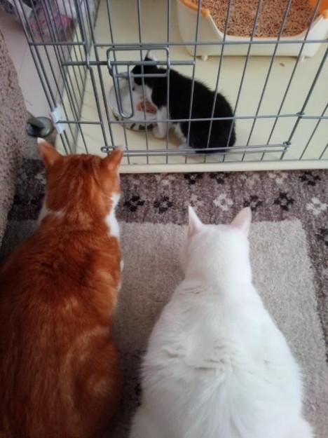 周りの猫はといえば、微笑ましそうにその動きを見ています。
