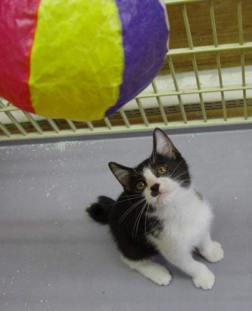 迫りくる紙風船にパ~ンチ。パワー炸裂。ビリビリ~~