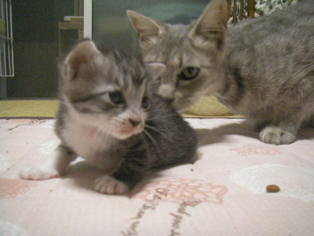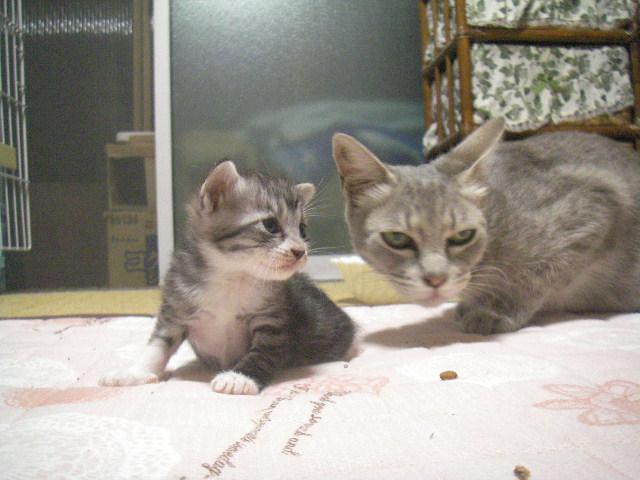 ママ猫ちゃんが子猫を取られたと私を睨んでます。