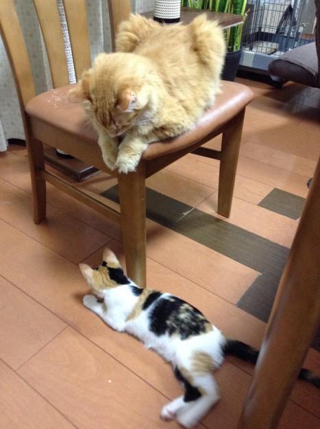 みいこは兄ちゃんにべったり甘えてみたいようで、それとなく付いて歩いて側にいます。つぶらはみいこが嫌いじゃないけどずっとかまってあげるのは面倒。離れて観察してる方が気楽で面白い。