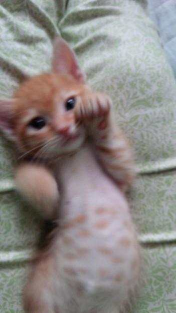 甘噛みができなかった斑ですが、兄弟プロレス?等で学習したのか甘噛みできるようになっていました。シェーラに対しても少し加減をしてるみたいです。