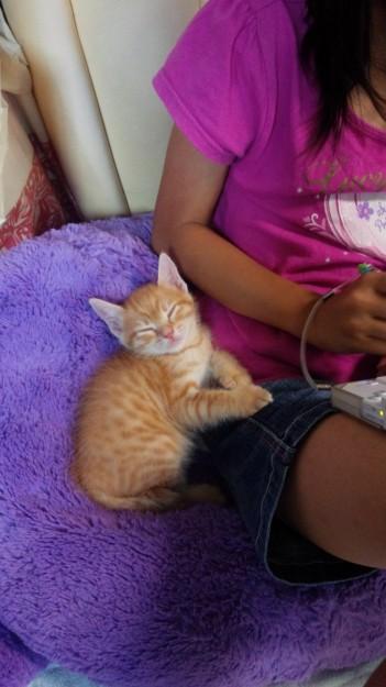 娘がゲームで遊ぶ傍らで前足ちょこんと乗せてそのまま・・・