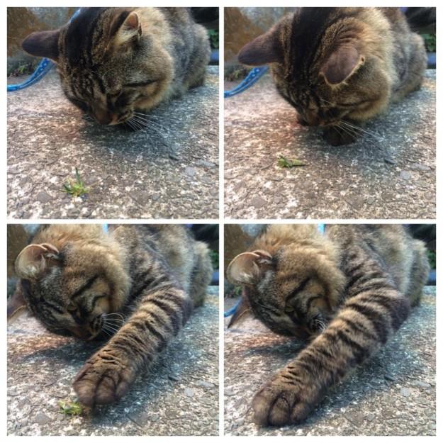 しばらくすると、モゾモゾと息を吹き返したバッタが