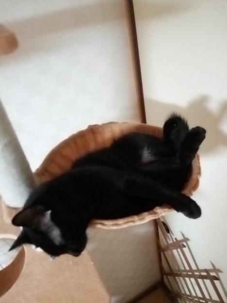 らん、タワーのバスケット?に入って寝るのがお気に入りです
