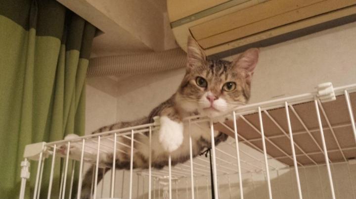 もちろん、ケージの外をよじ登って行くんですよ♪