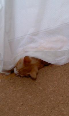 狭い部屋の中をあっちへ行ったりこっちへ行ったり、よじ登ったり隠れたり。