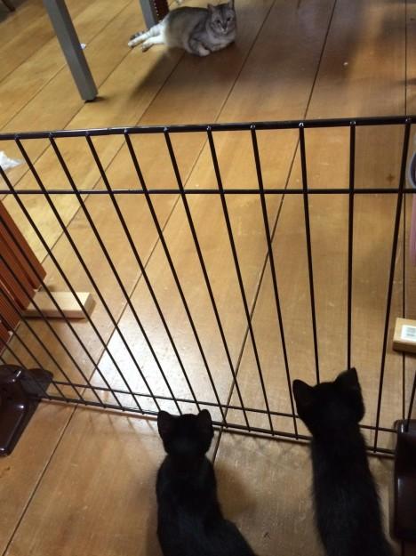 でも、ちょこはやはり気になるのかうるし達が柵から離れると寄ってきます(笑)