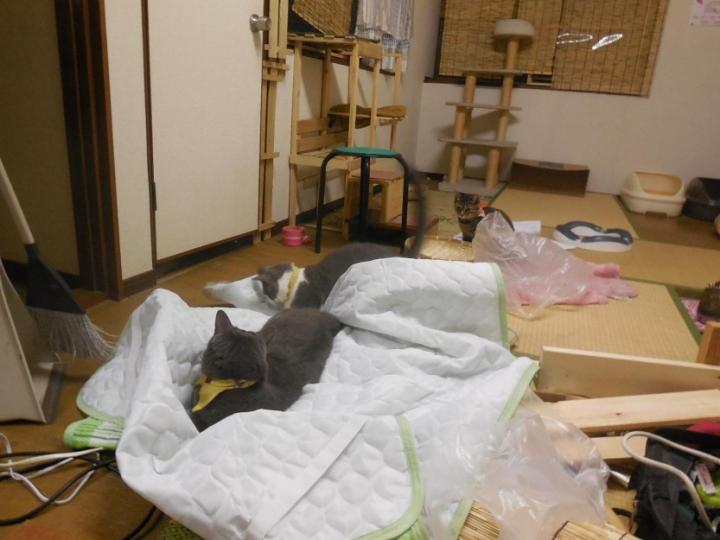 もうすぐ猫NGのお客さま、皆さん大人しく寝ていてくださいね