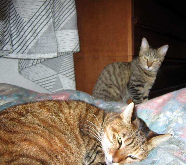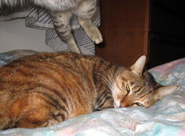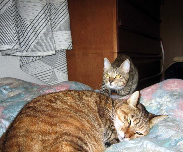 だからってそんな目でにらむなんて,私の布団なのに.ねぇヘナちゃん.