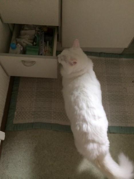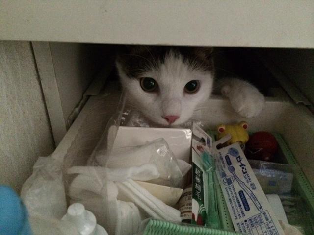 マロは勝手に引き出しを開けて、中に入り込みます。