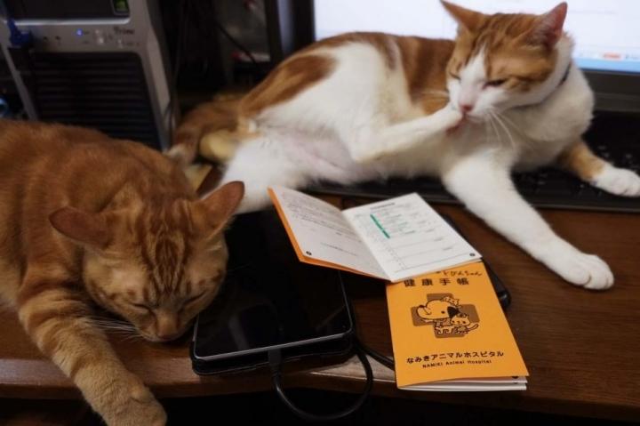 医者で体重はかってもらったら、小太郎は7kg、どびんは6.4kgだったかな?お医者さんによると5.5kg辺り維持するくらいがいいですって話で、やはりダイエットを勧められることに(汗)。