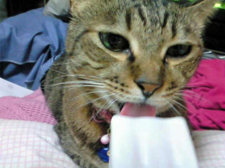こたちゃんにも試しに差し出してみたら、やっぱり同じように舐めてますねぇ。