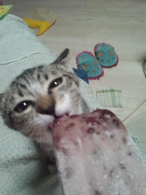 台風のせいで暇になってしまったので、夏らしく、アイスを食べる様子をお届けします。
