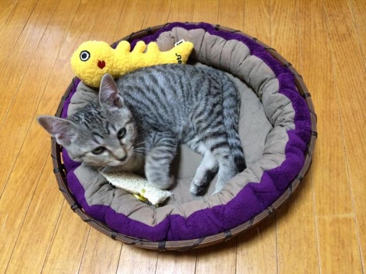 そして私もせっかくゆっくり自宅にいられるので、家にあった籠を利用して猫ベッドを作ってみました。