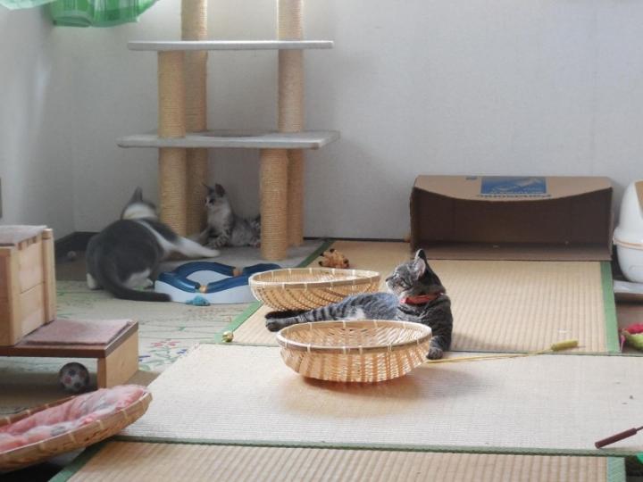 今日はチエ、テツ、ナナが2階で過ごしていました