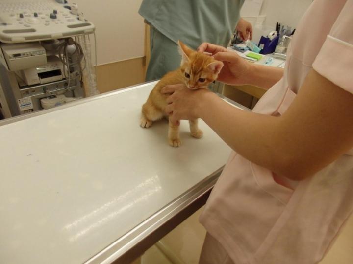 診察台に上がってからも思ったよりは大人しく、先生に「背中アビシニアンみたいで綺麗な仔だねえ」と言われなんとなく嬉しいロベリア。