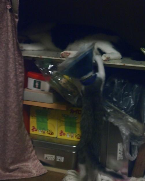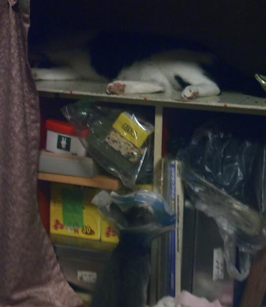 最初は床で寝ていたハチ君ですが、今日はまた押入れに入りました。