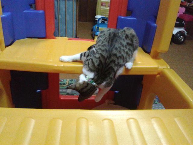 (3・4歳くらいになると、屋根に登り、そこから飛び降りる遊びを始め、