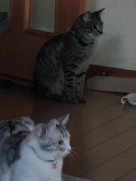 遠巻きに観察するコジローとほたる