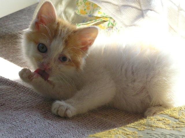 必死? の介護が功を奏し、ぶじ子猫の生命は救えたのでありますが、残念なことに左目だけは潰れた状態なのであります。