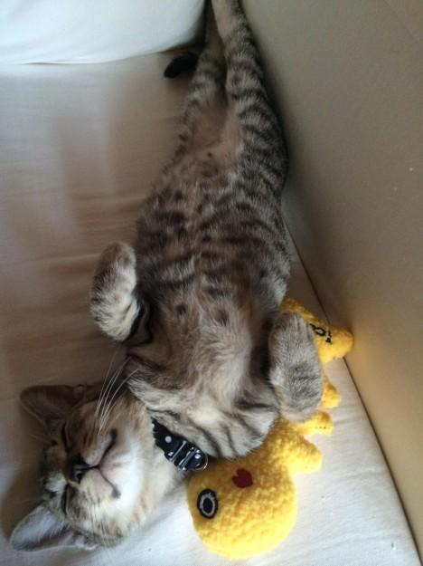 テーブルに上がらないように根気良くしつけを、とマニュアル本には書いてあるけれど、テーブルに上がる→下ろす→上がる→ちょっとおどかす→上がる→下ろす、を繰り返すうちに虎丸殿と心の距離ができてしまったような。。。