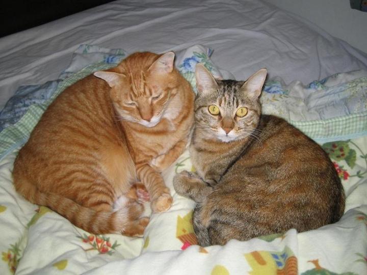 だいぶ寒くなってきたので、二匹仲良くお父さんのベットで