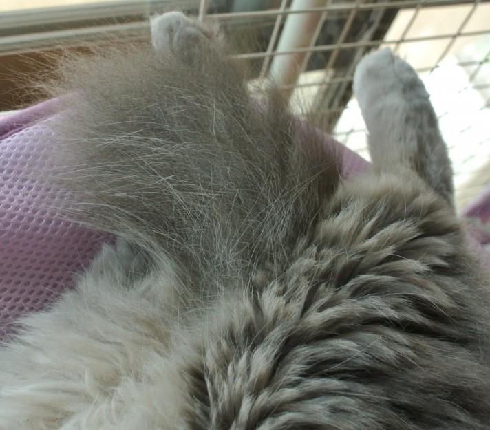なでなですると 股に挟んだまま、しっぽを振ってくれます(笑)