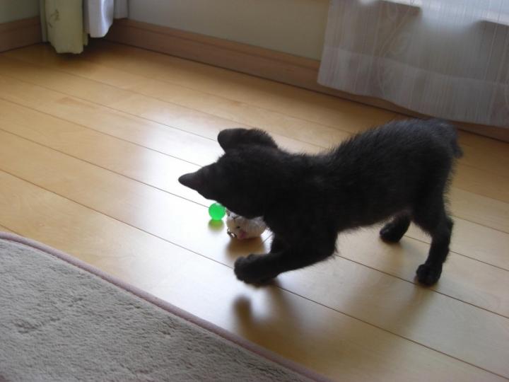 別の部屋で(クーラー無いです)猫を遊ばせて、掃除機をかけることにしました。