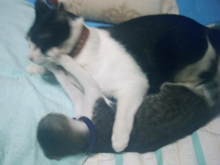 ずっと奥の部屋の、さらに奥に置いたケージの中で、静かなので、このころハチ君は、仔猫が居ることは知らない。