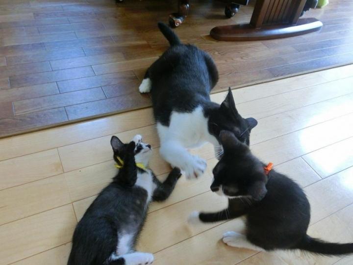 3ニャンズのうち1ニャンは新しい家族のもとにお婿入りを果たしました。