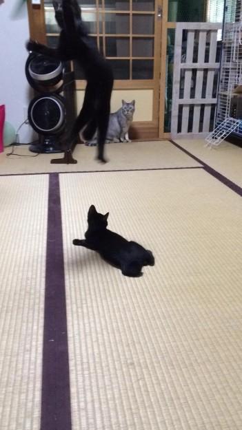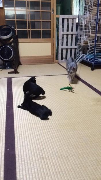近くにチョコが寄って来てますが、ネコじゃらしに夢中です(^_^;)