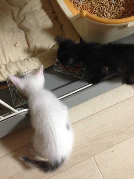 ダダーーっと走りゴロゴロ転がり合い、一緒にご飯を食べます。