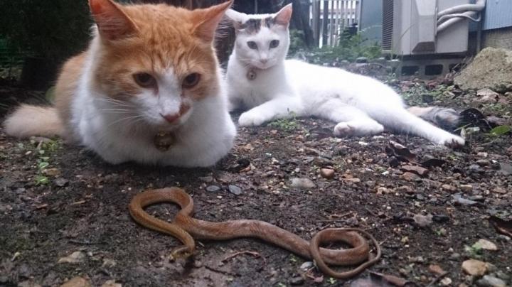 本日も雨の中、2ニャンズは身体をベタベタになりながら、