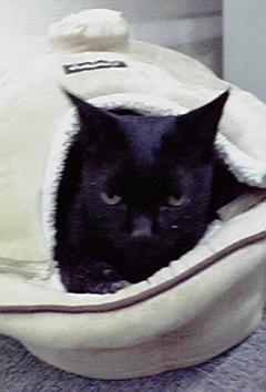 ◆鍋ベッドに入るクロちゃん。4年ぐらい前の写真です。