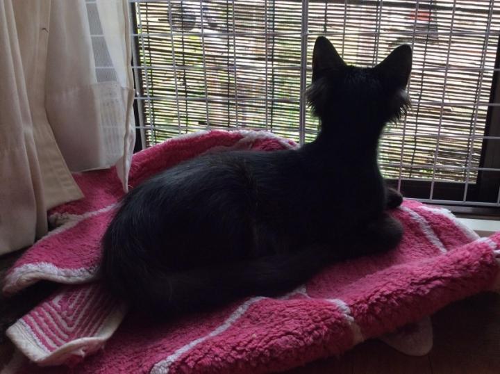 外の匂いに惹きつけられるのか、自然の涼しさの方がいいのか?獅子丸殿も虎丸殿もしばし窓の近くでくつろいでいました。