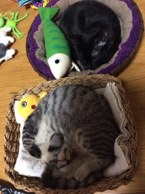 今朝私が熱にうなされていた時はいつになく激しい追いかけっこで、顔から体から踏まれまくってどうなることかと思いましたが、昼からは穏やかに過ごして今はまたそれぞれらしい寛ぎ方でウトウトしています。