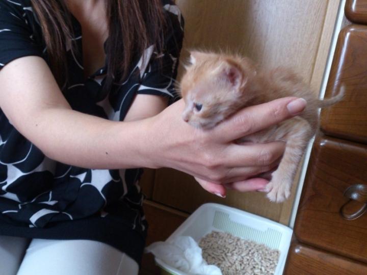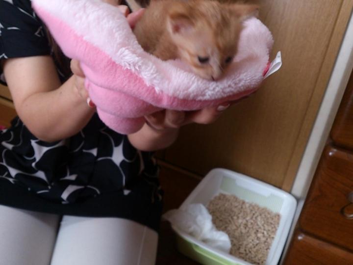 茶トラの仔猫、無事幸せへの第一歩、幸せへの一直線の電車乗れましたー♪