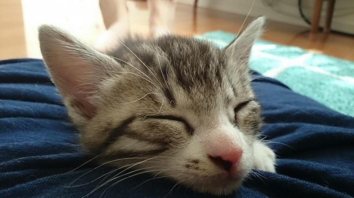 来週新しいおうちにいきますよー うにサン、自分より小さい子枕にしたらあかん(;´_ゝ`)