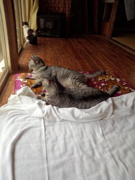 せっかく干した布団・・・何もシーツをめくって寝ることはないじゃないか・・