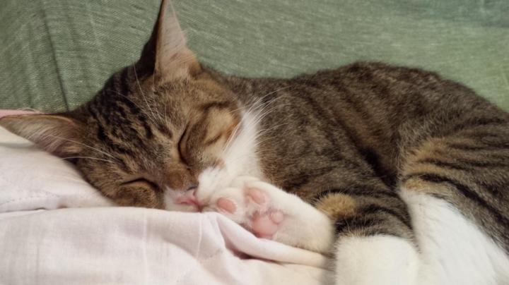 サクちゃんはソファの上、お昼寝ケットを敷いて気持ち良さそう。