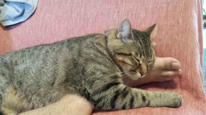 この子、ふくらはぎを枕にするのが好きみたい。