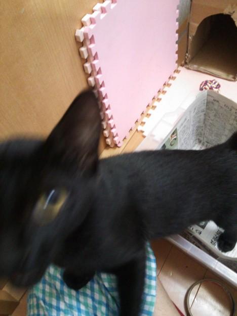 気に入った場所に落ち着くも、やはり甘えたくてぐいーっと寄って来ます。