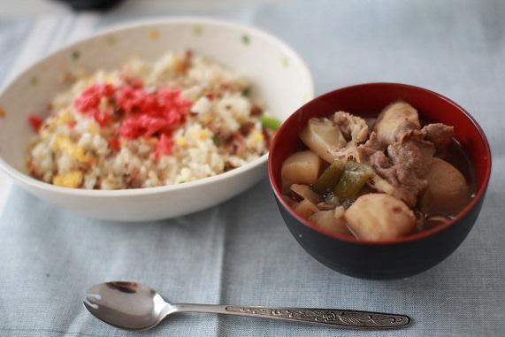 醤油味な豚汁の味付けに、牛肉を入れた感じになっていたはず。