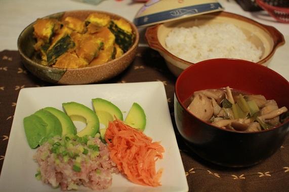 北海道のホクホク南瓜の煮物や土鍋ご飯・芋煮(夜は一回り大きいお椀)